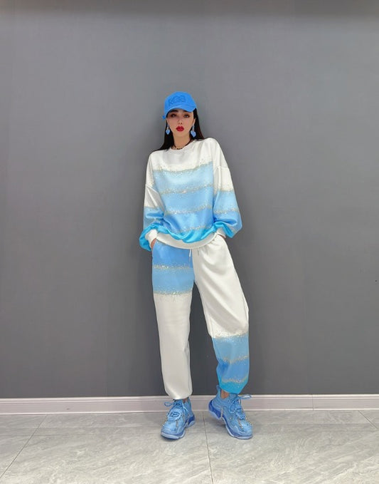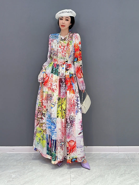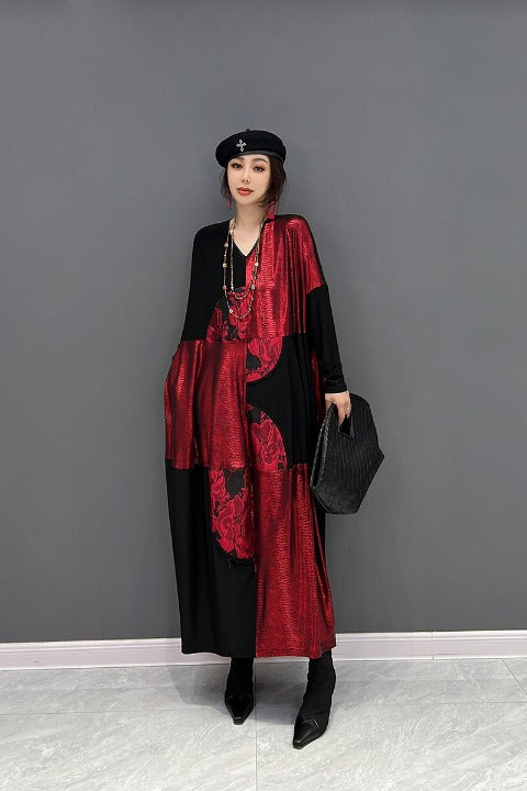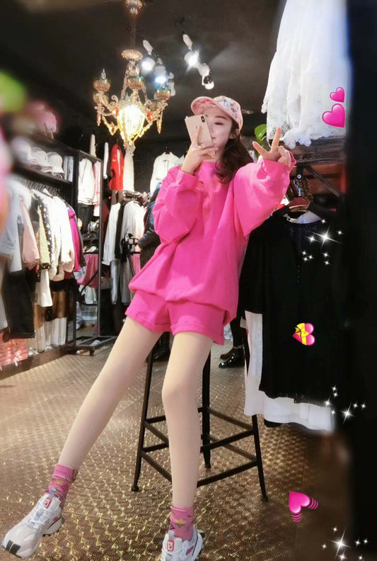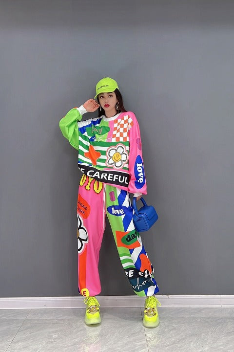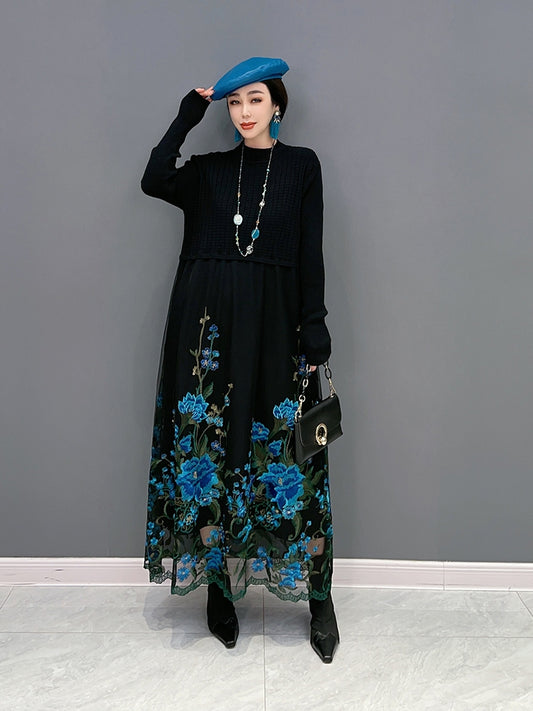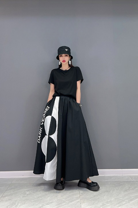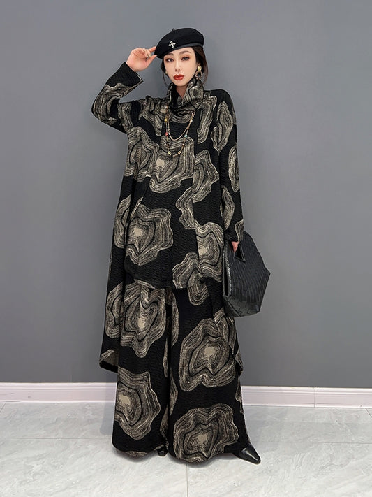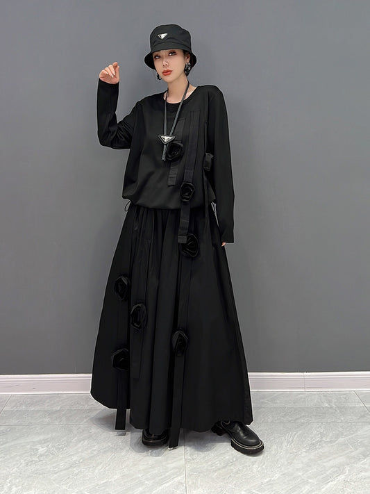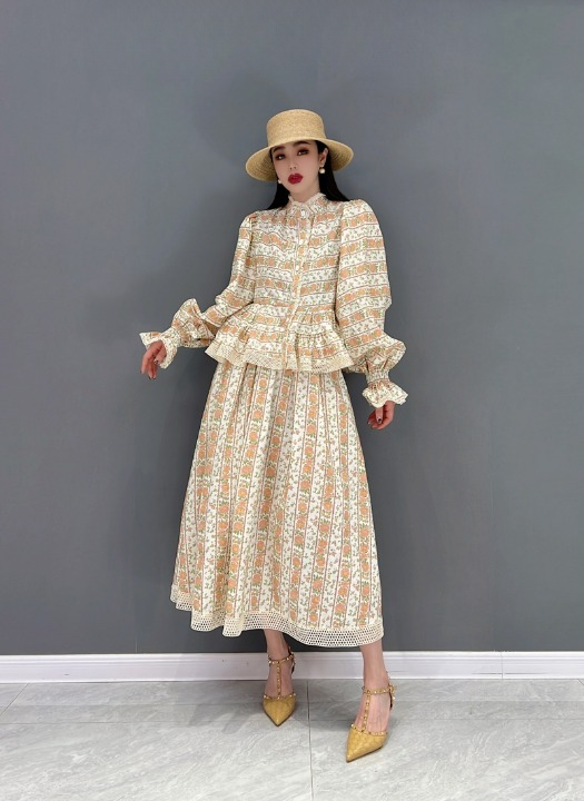 カジュアル 長袖 バラ柄 プルオーバー トップス&スカート ツーピース セット