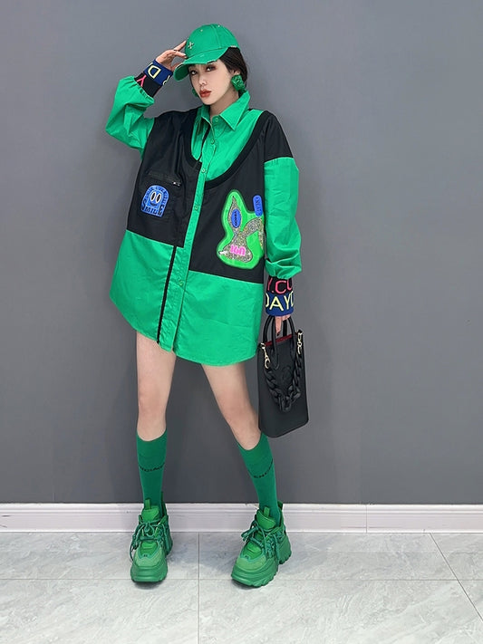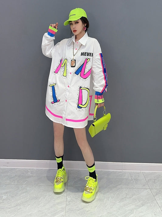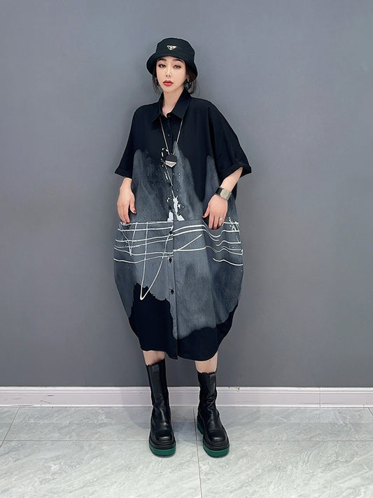 英字 シャツワンピース ラウンドヘム サイドスリット