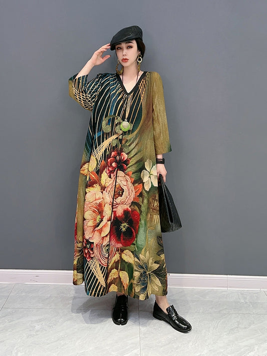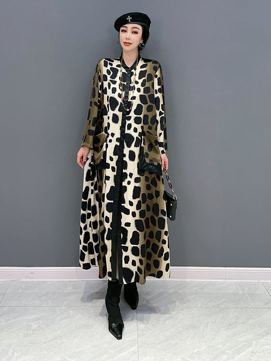 ヒョウ柄 フロントボタン ワンピース ロング丈
