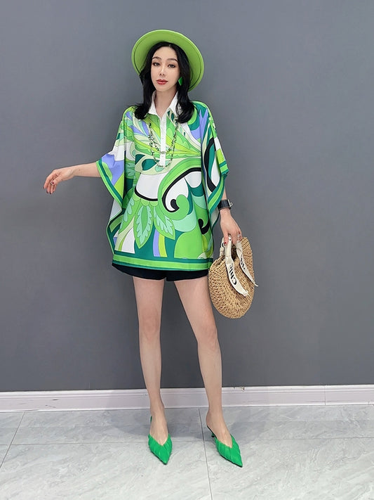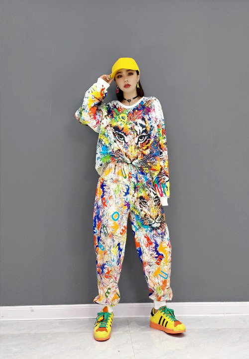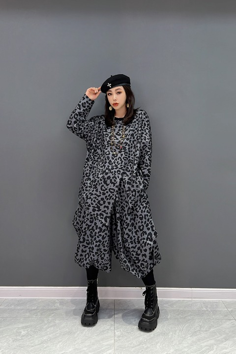 ヒョウ柄 アシンメトリートップス サルエルパンツ セットアップ
