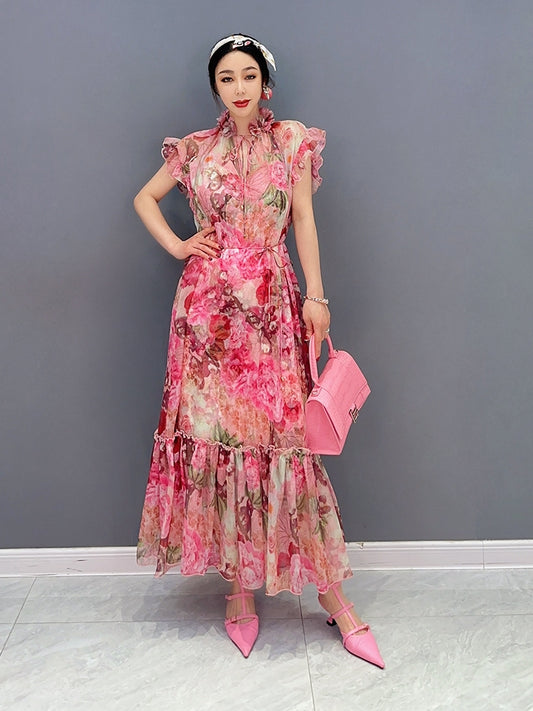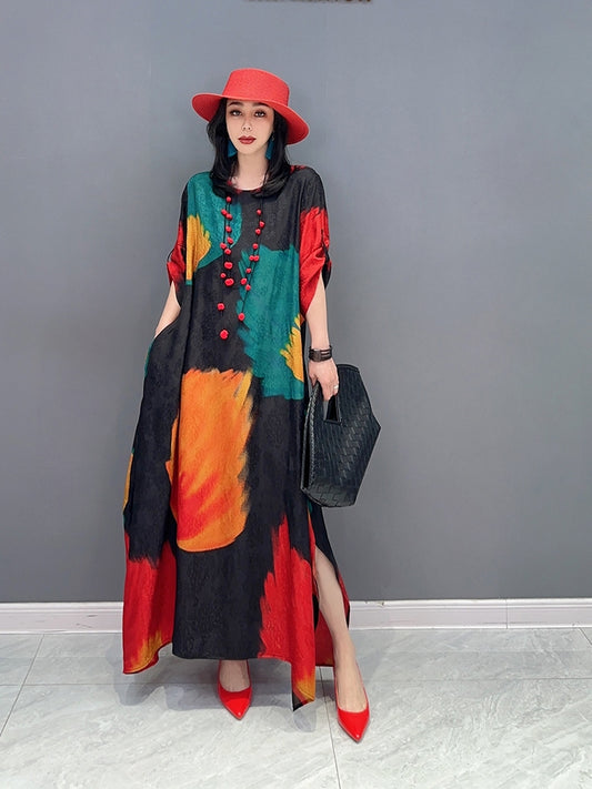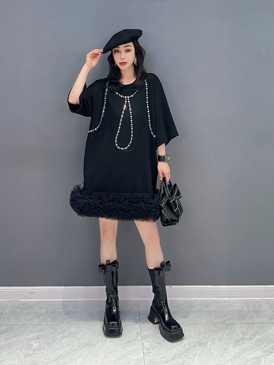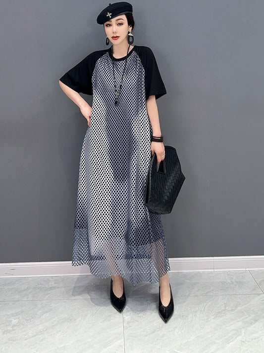 5分袖 アシンメトリー チュールワンピース マキシ丈