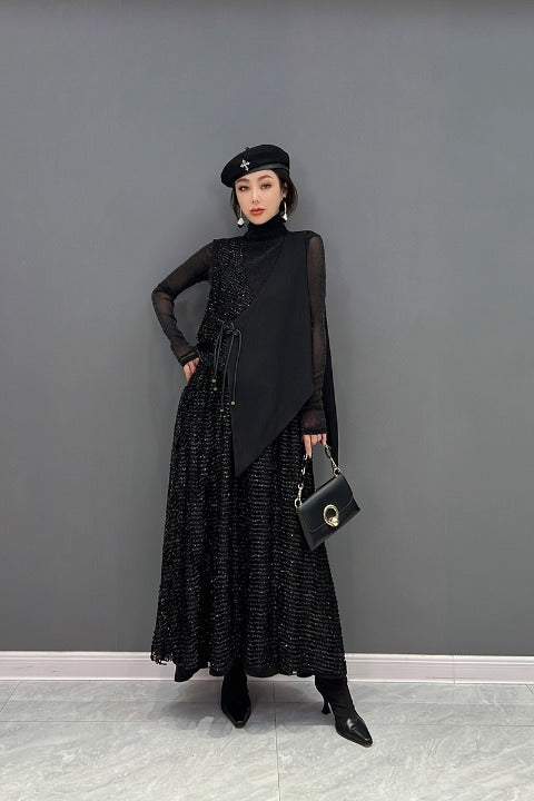 カシュクールベスト ロングスカート セットアップ ラメ入り