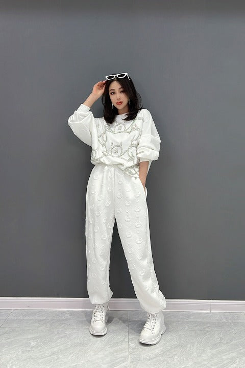 フラワーモチーフ プルオーバー ガウチョ セットアップ