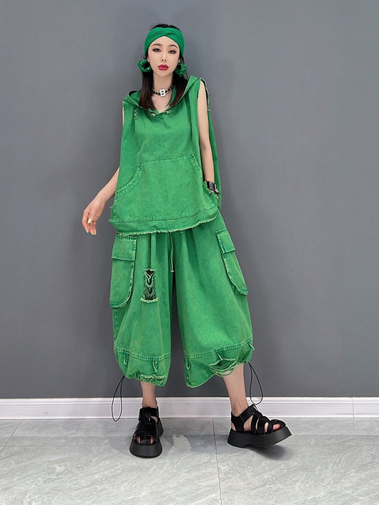 ベストパーカー サルエルパンツ セットアップ ダメージ加工
