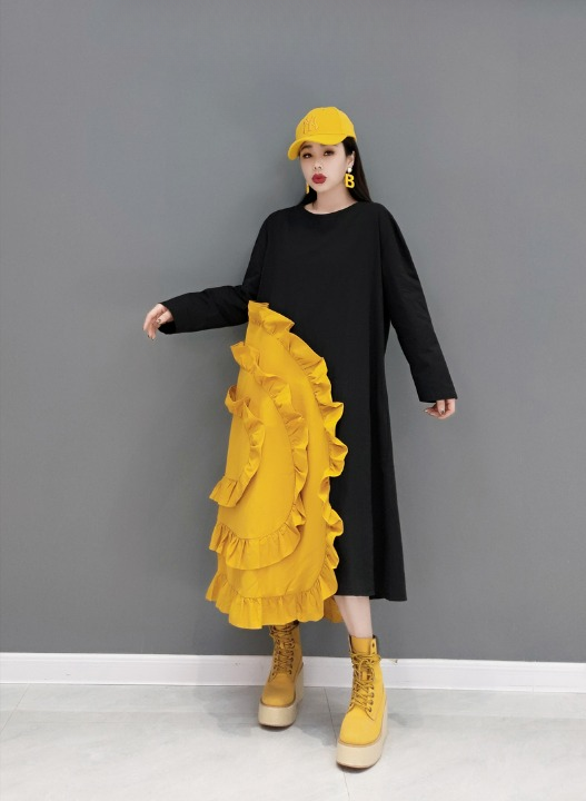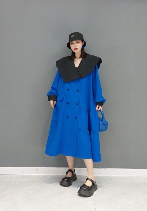 ペタルカラー ジャケットワンピース アシンメトリー ミドル丈