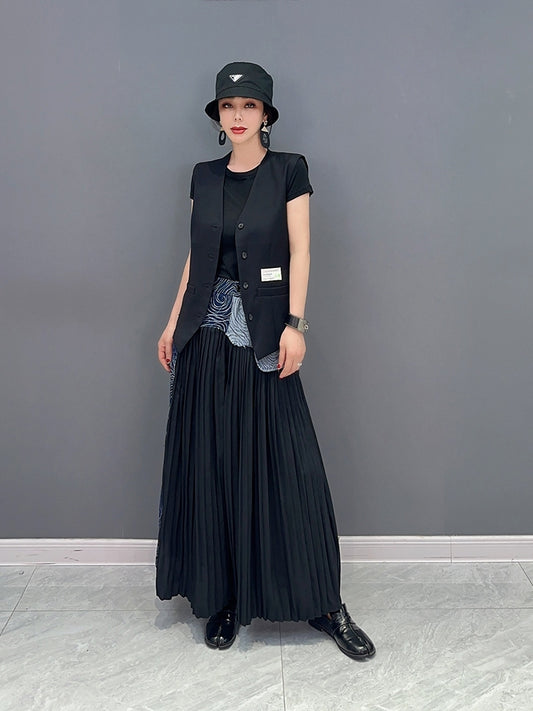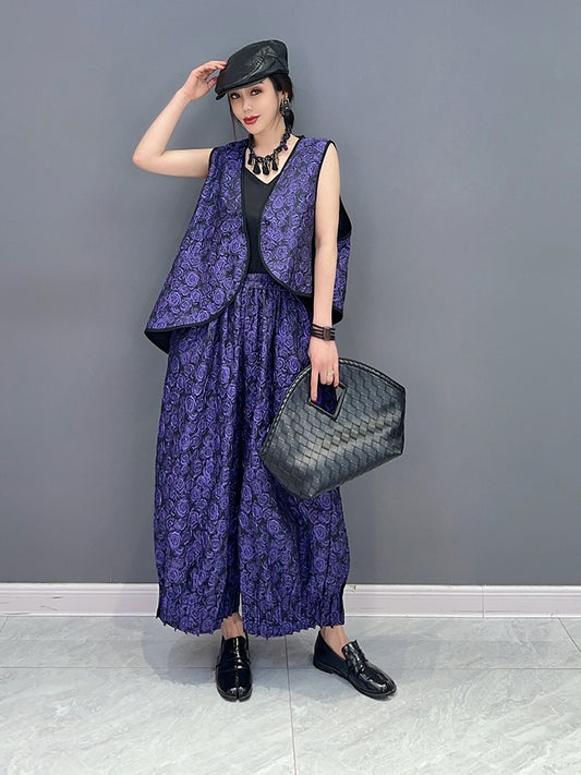 ノースリーブ ジャカードベスト&ワイドレッグ パンツ セットアップ