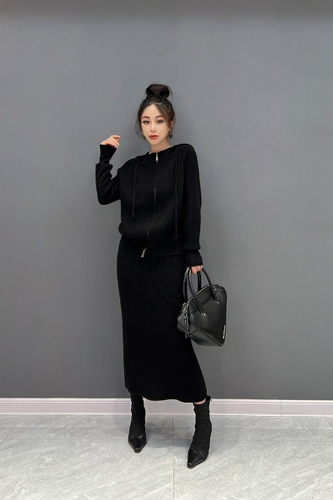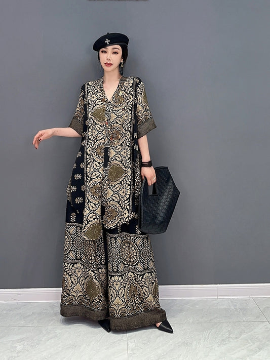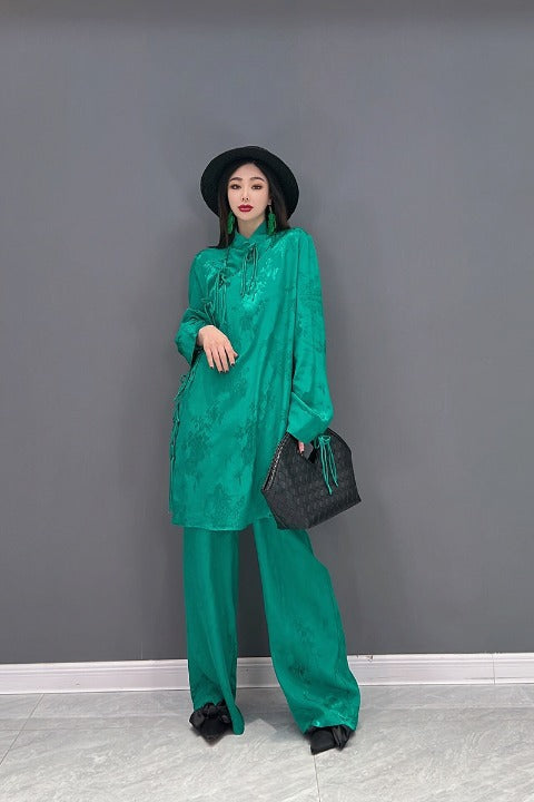 ジャカード ロングジレ&ストレートワイドパンツ ツーピース セット