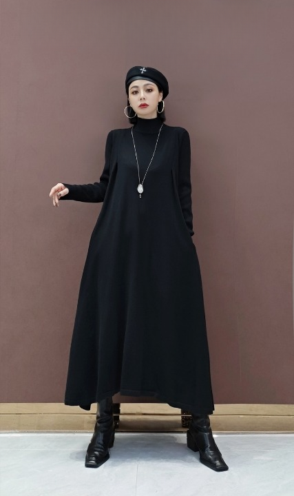 タートルネック ドルマン ニットワンピース フィッシュテール