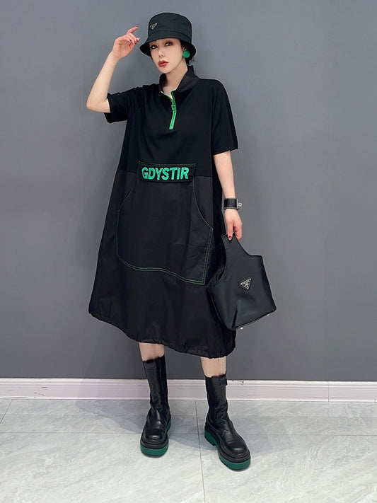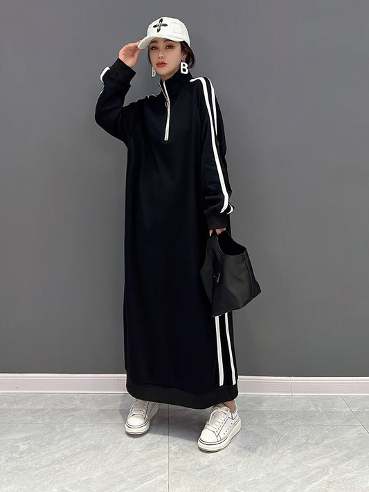 ジャージ風 ワンピース マキシ丈 リングジップ