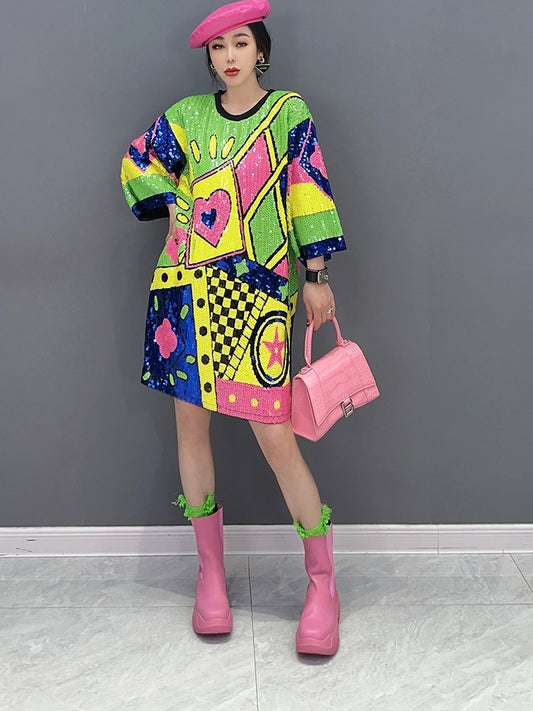 スパンコール アシンメトリー シャツワンピース ラウンドヘム